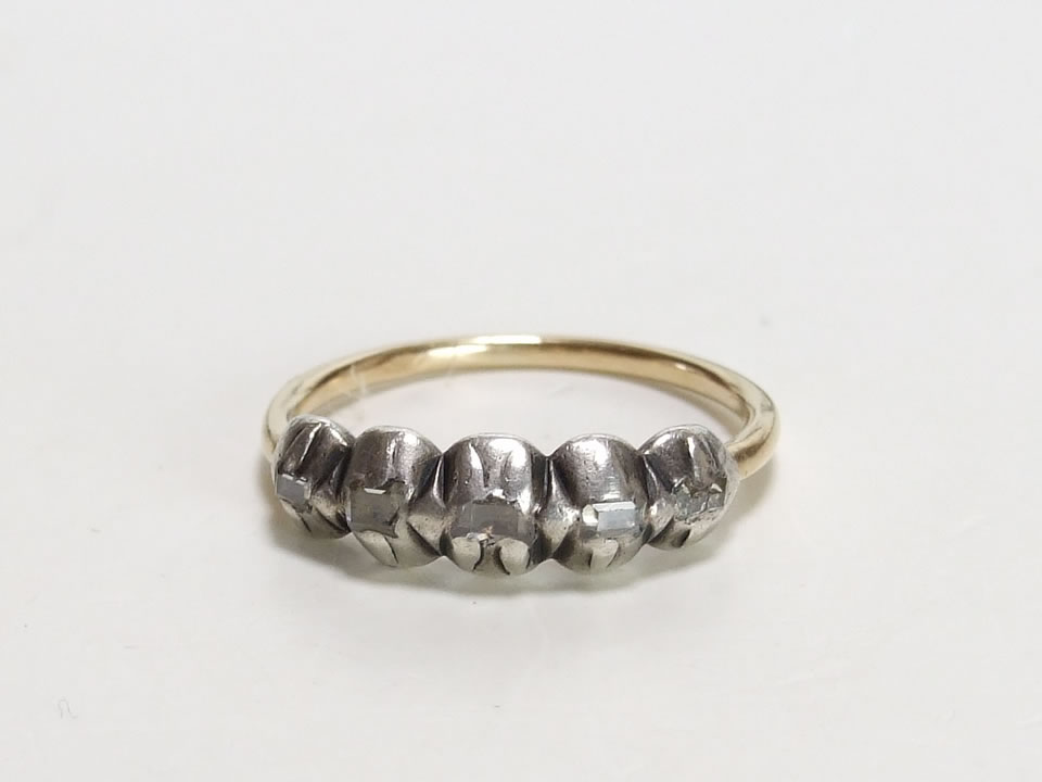 現在市場で見るテーブルカットのジュエリーは18世紀後期のものが多く、このリングも18世紀後期のものです。続きを見る