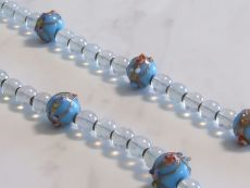 大半は透明〜半透明な水色のガラスビーズで、所々に乳詳しく見る