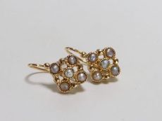 フランスアンティークならではの金細工の美しいゴールドドルムーズピアス、ブルーサファイヤやトルコ石など色石を用いたアンティークピアス、アールヌーボーやアールデコ様式のアンティークピアス。